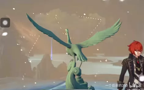 5.接着来到庆云顶神像这里,视角向地图下方,抬头就能看到小鸟,飞过去,调整鸟儿对准庆云顶;
