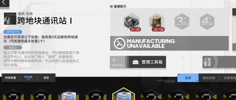 3、通讯站1级9天后,级6天后就可以携带一定数量的战术道具撤离,玩家后续将容量提升就可以带走更多的资源了。