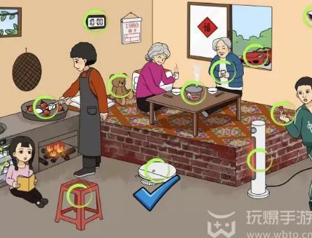 2、接着我们就可以在画面上找到:型料凳、洗碗机、电暖器、比心、摄像头等不符合80年代的答案。