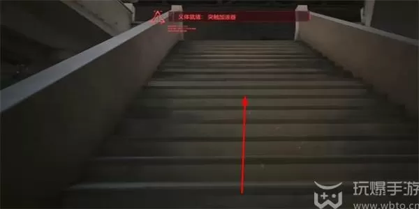 2、接着我们就根据任务指引前行,上到楼梯上面去探索到装备所在的位置。