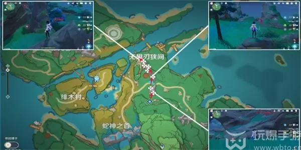 4、我们继续前往到踏鞴砂炉心右边传送锚点,有一块鸣草富集区,进行拍摄。