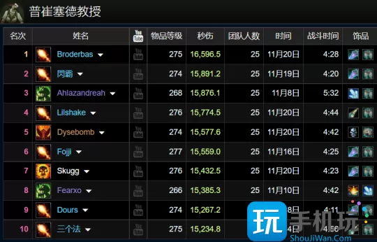 7、普崔希德教授 远程优势Boss,火法最高,一共占据6个席位。另外有2名痛苦术和1名暗牧,狂暴战则是唯一进入前十的近战。