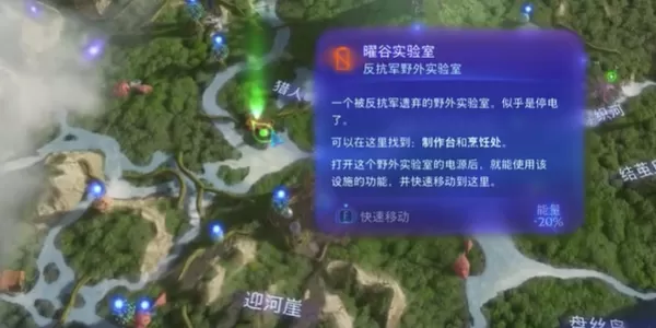 解锁:打开这个野外实验室的电源后,就能使用该设施的功能,并快速移动到这里。