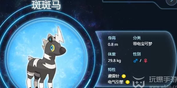 6、雷电斑马:性格粗暴的宝可梦。如果发脾气,就会从鬃毛里向着四面八方放电。