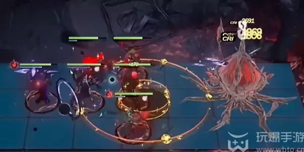 6、后第二个boss,他开局就是暴露核心的。如果刚才我们有在第一个boss那里复制流血层数的话,那么可以直接给他粘贴上,如果没有的话,就静静的等到他身上挂到四层流血,然后我们用卡门的专烙螳螂的必杀,然后加上德雷雅的必杀来刚好把他四核都给破掉。