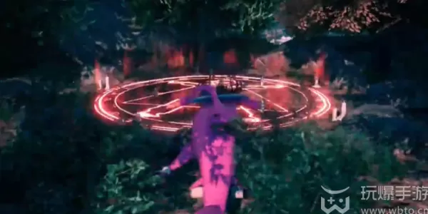 1、首先我们需要传送至【干草之子】的位置,在此在森林中找到发光的魔法阵,触发任务。