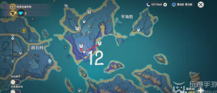 4、渊下宫地区点位4(12只):传送到【八衢姬之地】锚点,朝着指示方向走传送球上去。