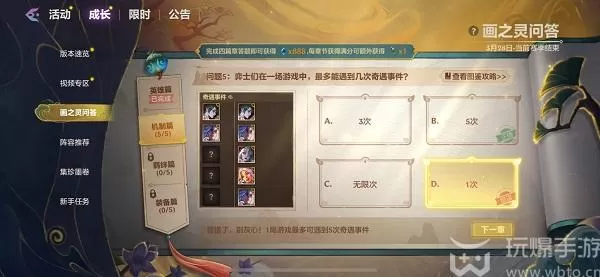 5、在一场游戏中,弈士们最多能遇到几次奇遇事件(5次)