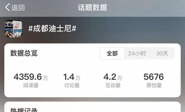 4月5日,#成都迪士尼#空降热搜。截至下午14:00,相关话题阅读量已达到4359万。