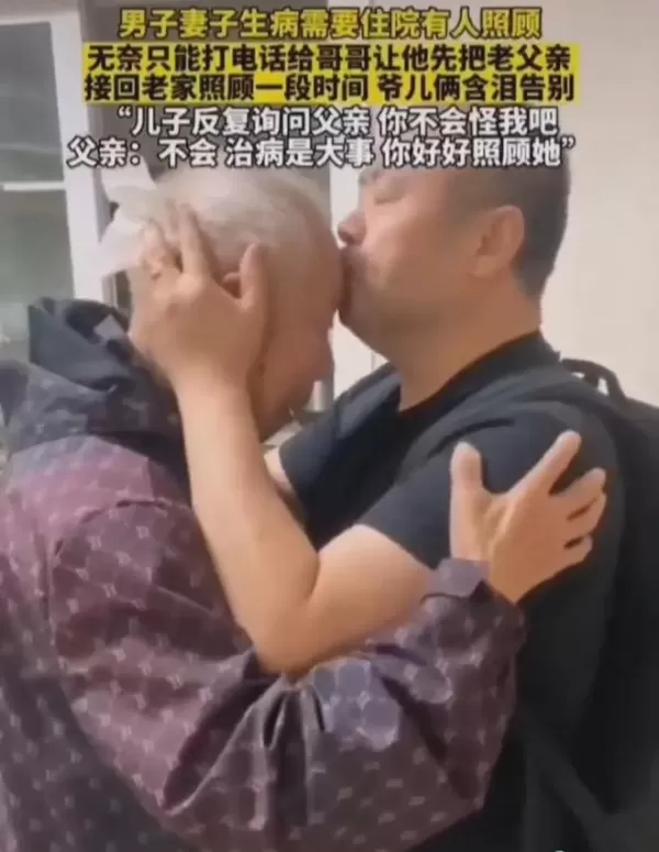 6月8日,江苏,一男子分享妻子重病,没时间照顾父亲,不得不把年迈父亲送回老家的一幕。网友说,感谢老父亲的理解。