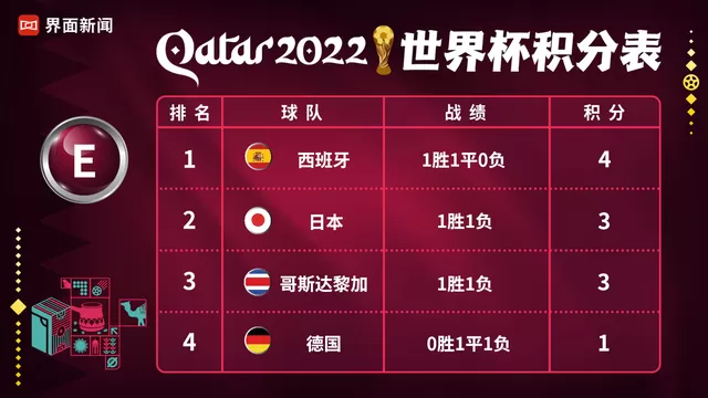 E组最后一轮对阵:日本-西班牙 哥斯达黎加-德国