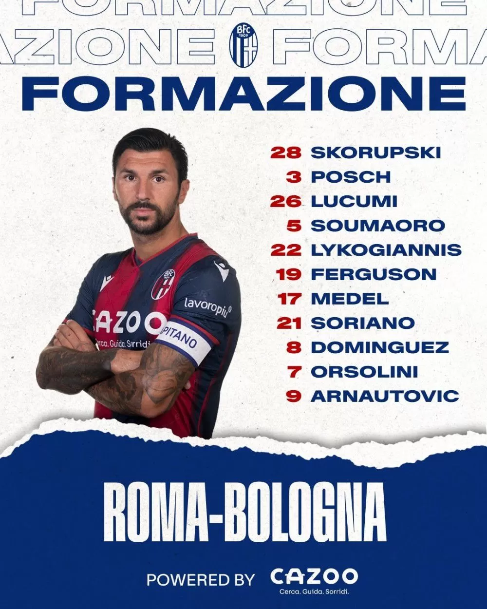 博洛尼亚首发:28-斯科鲁普斯基、3-安杰利、26-卢库米、5- 苏马罗、22-利科扬尼斯、19-刘易斯-弗格森、17-梅德尔、21-索里亚诺、8-多明戈斯、7-奥尔索里尼、9-阿瑙托维奇、