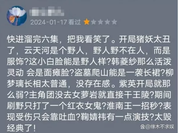 网友吐槽整个剧的质感就是一部塑料廉价网剧质感,特效也舍不得多做一点,所谓的妖族横行,却连妖兽都不做一个,全是群演。
