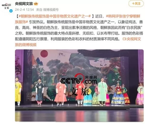 张佳宁穿朝鲜族服饰宣传,我们的官方媒体也发文力挺了。